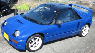 | スズキアルトワークスのFFターボのユニットをそのままリアミッドシップに配したスポーツカー。ボディ構造も独特でキャビン部にH型フレームをもつ強固なスチール製スケルトンモノコックを採用し、そこに軽量なプラスチック製アウターパネルを装着する。ドアは上に跳ね上げるタイプのガルウイングドア。インタークーラー付きのターボエンジンをリアミッドシップに搭載し、5MTと組み合わせる。足回りもアルトワークスからの流用で4輪ストラットサスに4輪ディスクブレーキとなっている。 現在のオーナーさんは平成18年8月頃に入手され特に不具合なく現在に至っています。 【外装】 お車はシャッター付きガレージにて大切に保管されており、塗装の状態も良く、艶もあり、傷らしい傷は見受けられませんでした。 【内装】 スポーツシートが奢られた室内は5Fミッションと相まってスパルタンな雰囲気を漂わせています。バケットシートに座るには低いガルウイングドアと高いサイドシルに挟まれた狭い空間に体を滑り込ませる必要があり、乗り手を選びます。ドライバーズシートのサイドサポート部には乗降時の劣化は見られますが、破れやほつれは見られず、ダッシュボードやその他の内装もよい状態でした。 【エンジン、機関】 油脂類は定期的に交換されており、現在特に不具合は無いそうです。アルトワークス用64psのインタークーラー付きターボユニットは素晴らしく、恐ろしいほど走るそうです。雨天は未使用のようで、低走行距離と相まってエンジンルーム内もとても綺麗です。 【その他】 現在車検がありませんが、追加金なしで車検を取ってお渡し致します。運転席側のガルウイングドアダンパーがへたっていて、中間位置での保持ができません。F14・R15インチのレイズのホイールはタイヤとセットで交換後 300km程しか走っていません。ノーマルのタイヤ・ホイール、スペアタイヤは保管しています。その他HID、FIAMMのエアホーンが素モデルのスペアタイヤ位置におさまっています。 お車は高知県高知市にあります。個人売買のため消費税はいりませんが自動車税の月割り額とリサイクル券の別途負担をお願いします。 |