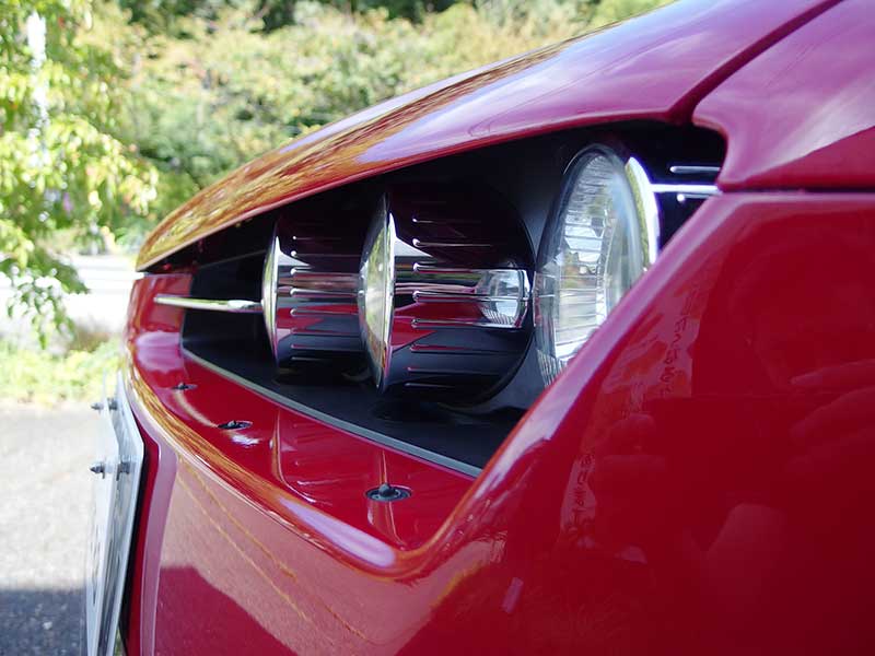 コンセプトカーで公道を走る気分。プレクシガラスにも覆われない独特の丸目6灯。フロントバンパーから一直線に伸びるラインはフロントフェンダー、ボディサイドそして最後にリアガラスの後端で左右が交差し、全体的なまとまりを演出しています。造形に親和性を感じるサイドウインカー、ドアハンドル、テールランプ。トランクの使い勝手は悪くなりましたが、テールランプやリアバンパーに切り欠きが入らず、シンプルながらボリューミーなリアのデザイン。ひとつひとつにこだわりを感じる巨匠ジウジアーロの作品がブレラです。