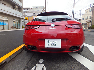 ステーションワゴン等を乗り継いだオーナーさんは5年ほど前に本車両を手に入れられました。ワンオーナーで購入時の走行距離は1万9千キロほどでした。オーナーさんでツーオーナー目です。記録簿が揃っている点とロッソ(赤)の外装色とブラックの純正OPの19インチのマッチングが決め手だったそうです。