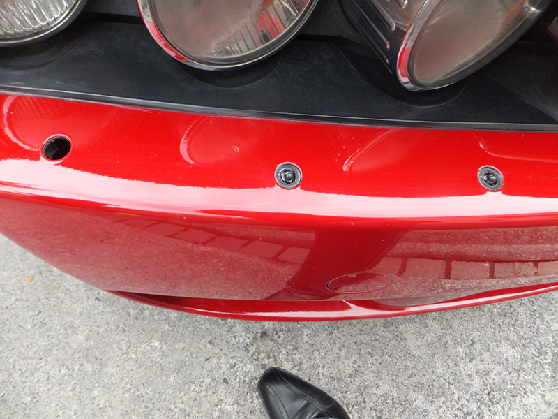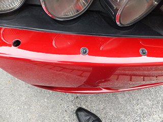 ウィンドーウォッシャーのひとつがバンパー内部に脱落、修理は可能 |