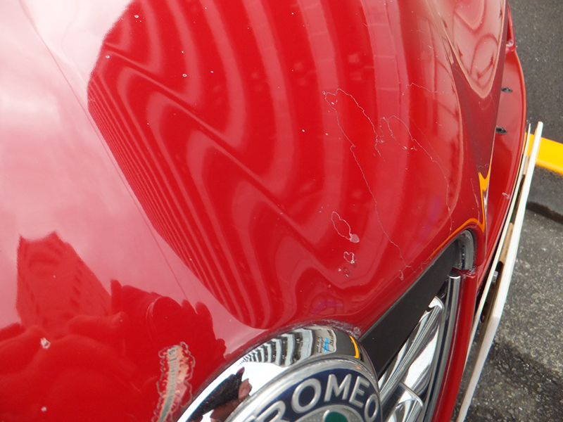 目立つような大きなキズやヘコミはございませんが、フロントには飛び石跡と左リヤのタイヤハウス近辺にペンタッチによる補修跡がございます。
