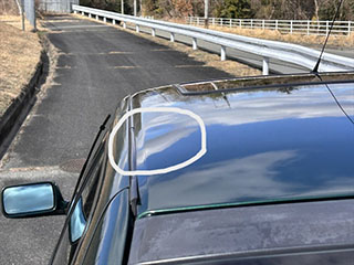 購入時よりルーフのこの部分にうっすらとした凹みがあります。 |