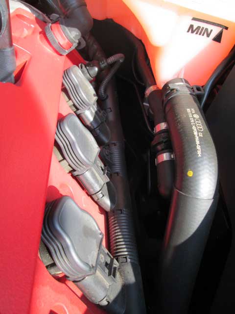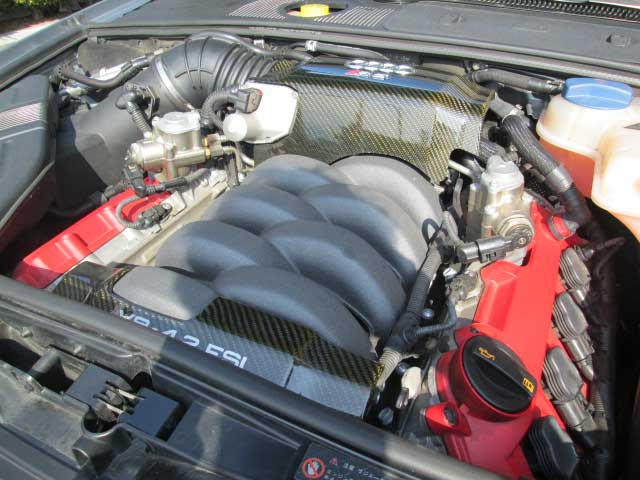 エンジンは R8と同じBNSを搭載しています。90度V8 4.2リッターFSIのガソリン直噴で、高回転型V8エンジンで、8,250rpmを許容しながら420馬力/43.8kgf-mの最高出力を出します。