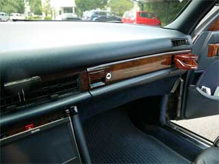 | 1985年 メルセデスベンツ 500SEL ケーニッヒスペシャル仕様です。 現オーナーさんが1989年に購入されています。購入時の走行距離はおよそ20000キロとのことですので、現在までに76000キロほど走行されています。 迫力のボディはケーニッヒスペシャル仕様ですが,これは購入時からのもので購入後に変更されているところは無いとのことです。 ボディカラーはオーナーさんによってブラックにオールペイントされています。 購入時はパープル系のカラーで、元のカラーはブルーの様です。 元色はエンジンルームに若干残っています。 室内はメーターがホワイトメーターに交換されており、右側のメーターは、ドライブコンピューターになっているようです。 スピードメーターは300キロ表示になっています。 オーナーさん自身ほとんど使用されていないとのことです。 メーターは写真にもあるようにLEDに変更されブルーに照明されるようになっています。 さらにサイドシルのメルセデスの文字も光るようになっています。 シートはオリジナルの物でサイドに擦れが見られますが、破れなどはありません。 リアには後付けでカーテンが装着されています。 ナビはHDDナビが装着されています。 これは地デジ対応、バックモニターも装着されています。 リアにはウーハーも付いていますので、サウンド面ではかなり凝った仕様になっています。 エンジンはノーマルで改造点などは無いようです。 現在コンディションに問題は無く調子も良いとのことです。 足回りも購入時の状態から変更はされていないとのことです。 タイヤは フロント 225−50−15 9J リア 345−35−15 11J が装着されています。 オーナーさんによるメンテナンスとして AT オーバーホール これはATが壊れたのではなく、オイル漏れが発生したため一緒にオーバーホールをされたとのことです。 現在 ATの調子は問題ないとのことです。 オルタネーター交換 ラジエーター交換 タペット修理 イグナイター交換(中古ですが予備あります。) ヘッドライトHID仕様に変更 |
