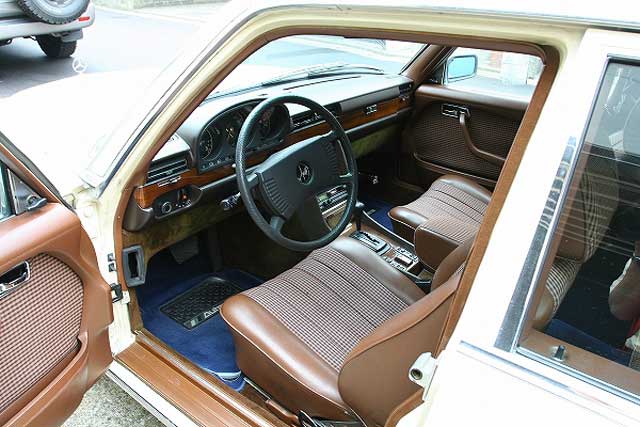 内装の程度については文句の付けようも無く、年式を考えると驚くような綺麗さです。 聞けば、買われた際には新車時からと思われるようなレースのシートカバーが装着されていたとのこと。シートのヤレを感じさせないのもさすが、この頃のメルセデスです。