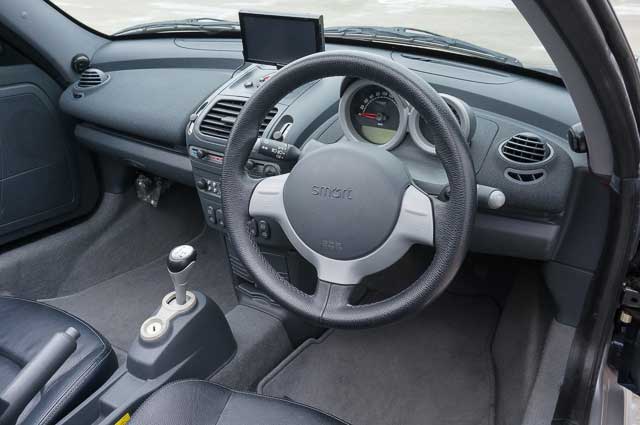 | 初代スマートから生まれたスポーツカー、ロードスタークーペの程度良好車です。 自動車事業が未経験だったスウォッチと小型車製造販売が未経験だったメルセデスの合弁事業として生まれた、おにぎり型の初代スマートたるスマートクーペは、トリディオンセーフティセル構造に2名乗車セミATオンリーといった思い切った理想主義的設計で、次世代型シティコミューターとして非常に画期的な車でした。 ロードスタークーペはロードスターとともに2002年(H14)にパリサロンにて発表された、スマートのスポーツモデルであり、先に挙げた成り立ちはおにぎり型クーペと同一ながら、専用設計のシャシーと専用チューンのパワーユニットが奢られています。 一説には、おにぎり型クーペの持つ、軽量コンパクトなターボユニットをRRレイアウトに搭載し6速ギアボックスで駆動するというパワートレインが、小型スポーツカーにとって理想的と設計陣に認識されていたため登場したとも言われています。 ロードスターが天地方向に薄いリアトランクと電動ソフトトップを持つのに対し、ロードスタークーペはリアがグラスドーム化されデタッチャブルハードトップ仕様となっているのが違いです。 ●● プロフィール ●● こちらのお車は、初代スマートフォーツーを2台、フォーフォーを1台乗り継ぐほどのスマートフリークで、他にもロータスエランM100やポルシェ944なども所有するエンスーであるオーナーさんが、そのスタイリングと走りに惹かれ2016年(H28)12月に都内ショップにて購入されたものです。 その時の走行距離は43,000kmほど、そこから現在まで4,000kmほどしか走っていないことになります。 主な使用用途はワインディングでのドライブや熱海の温泉に行くためとのことで、中長距離主体とのことです。 ●● 外装 ●● 全体的に良好なコンディションです。 ネイビーメタリックに塗られたボディは艶も十分保たれています。 目立つキズや凹みはありません。 目を凝らすと、フロントには若干の飛び石が認められます。 ホイールは4本ともガリキズはなく綺麗ですが、落ちないor落ちにくい汚れは部分的にあるようです。 ドアミラーには傷はありませんが、左側のものは表面の樹脂にやや褪せが見られます。 デタッチャブルハードトップにはカーボン調のシートが貼られていますが、軽微なヤレが2〜3か所見られます。 灯火類・エンブレム類は全てキレイに保たれています。 モディファイとしては、ヘッドライト周りとリアナンバー周りがボディ同色に塗装されています。 ●● 内装 ●● 基本的にノーマルの内装も良いコンディションです。 ステアリングやスイッチ類、レバー類は全て良好で、機能的な問題はありません。 シートは座面表皮のたるみは見られるものの、実際掛けてみるとヘタリは全く感じられません。 純正オーディオ、ラジオはOKですが、CDチェンジャーは不動です。 そのためか、前のオーナーさんはCDを聴くためにリアラゲッジにCDデッキを追加しています。 また、Aピラー付け根にはツイーターを、Bピラーにはサブスピーカーを設置しています。 このあたり、現オーナーさんは運転中に音楽を聴かないため、全くタッチしていないとのことです。 もうひとつ、デタッチャブルハードトップをロックするフックに関して、右側はやや外れやすいとのことですが、それによる雨漏り等は全くないとのことです。 インパネ中央部にはパナソニック製ポータブルナビが設置されていますが、そのままお付けするとのことです。 ●● 機関・足回り ●● フルノーマルです。 現在特に不調箇所はありません。 購入後いちどヤナセにて、 ・左フロントフェンダー下部のファイヤ・ウオール脱着加工(異音対策) ・フロントスタビライザー緩み修正 ・ATクラッチ調整 ・リア・モジュール全体脱着(異音対策) ・リア・クロスメンバー脱着・接合部給油(異音対策) ・リモコンキーバッテリー交換 といった軽整備をしたのみで、大きな故障や修理はありません。 修復歴もありません。 ●● インプレッション ●● ロードスターとロードスタークーペ、それぞれ一長一短ですが、スタイリングのまとまりに関してはロードスタークーペに軍配を上げたくなるくらいのまとまり感・塊感があります。 フロントスクリーンとトリディオンセーフティセル、アルミホイールがシルバーに塗られ、ネイビーブルーのボディとのコントラストが美しく、また機能を主張しているのもスマート流です。 フロントとリアのシルバー部分がボディ同色にペイントされていますが、趣味よくさりげなく個性が光っていますね。 3本スポークの純正アルミホイールですが、ロードスタークーペはおそらくこのホイールとセットでデザインされたのでしょう、最高に似合っています。 助手席にて試乗させていただきましたが、さすがメルセデス設計・製造だけあってボディ剛性感が非常に高く、RR独特の後ろから押されるような加速とキビキビとしたハンド