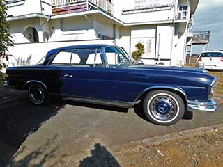 【2026年1月更新】 センターピラーを持たないハードトップスタイルのボディは、エレガントでスタイリッシュなデザインで、ダブルバンパーに縦目のヘッドライト、ラウンドした前後のウインドウが特徴であるが、セダンの様なフィンテールでは無くシンプルなテールデザインにされていた。 インテリアは安全と快適性を備え、高級感のある仕立てがされていた。 シフトはコラムの4速AT、搭載されるM127型水冷直列6気筒SOHCエンジンは、ボッシュのインジェクションを装着し、2195ccの排気量から、最高出力120ps/4800rpm、最大トルク19.3kgm/3900rpmを発揮し、最高速度は172km/hに達した。 ◆当車について◆ ※型式/−11102−、原動機の型式/127984、車台番号/11102112030●●● ◆エクステリア◆ サイドミラーは左側のみで、右側のサイドミラーは付いていませんので、車検の際は要注意です。 ボディ同色に塗られたスリーポインテッドスター付きのホイールキャップに凹みやガリ傷はありません。 またリボンタイヤはMAXXIS MA-1の195/75R14、2020年43週製造で5〜6分山程度あります。 残念ながら、右のフロントフェンダーやリアフェンダーに塗装のクラックや浮きがありますが、良く見なければ分からないレベルです。 ◆インテリア◆ 木製のメーターナセルのダッシュボードに、衝突時のショックを軽減するクラッシュ・パッド付きの大系ステアリングはパワーアシスト付きですので、取り回しは楽です。 コラムシフトの4速AT、三角窓とRühlmeister(ルールマイスター)社製のクーラーが装備されていますので、夏場も快適です。 当時のヨーロッパでは最大のラジオ生産会社であったGRUNDIG(グルンディッヒ)社製のラジオは、FM/AM共に聴く事が出来ます。 レトロな時計はドイツで最も古い時計メーカーであるKIENZLE(キンツレー)社製で、当時としては珍しい機械式の自動巻きとの事で、作動していますが多少誤差がある様です。 当時オプションだったサンルーフは手動式、電動式と違い故障する事はありませんが、あまり開けた事は無いそうです。 高級感を感じさせるライトグレーとウッドを基調とした車内ですが、残念ながら色合いの関係から、シートやドアトリム、フロアカーペットに汚れが目立っていますが、クリーニングをすれば綺麗になるレベルです。 その他気になる点として ◆エンジン・整備関連◆ 整備記録は日本国内の現オーナー時のみとなりますが、24年間分の整備記録は全て保管してあります。 2001年にアメリカから輸入した際の前オーナーの直筆の書類では、オドメーターの105,000mile(168,981km)は実走行距離で、1998年にはエンジンをフルオーバーホールしていると記載されています。 日本に来てからはスピードメーターをkm表示に変更し、その際にオドメーターの距離はkm換算にして引き継いでいるとの事です。 数字だけだと、過走行車に見えてしまいますが、新車から62年経っている事を考慮すると、年平均では3,950km、月平均では329kmですので、過走行と言うより、コンディションを維持するには最低限のレベルの距離数と言えます。 また1998年にエンジンをOHしているとの事で、その際の距離数の記載はありませんが、上記の年平均の数値から推定すると、約96,700mile(15.7万km)時点で行われており、それからは約8.8万km程度の走行となります。 整備はこの手の車に慣れた所に依頼していますが、近県の方であれば引き継ぎは可能です。 ◆オーナーさんより一言◆ 日本に来てからの整備記録は全て保管してありますし、1998年にアメリカにてエンジンをOHした際のオーナー自筆の証明書もあります。 またこの車は過去に2回、カー雑誌の取材に貸し出した事があります。 トランクが広いのでゴルフに行くのに良く使用していますが、動力性能に関しては、高速道路を110km/h程度で巡行するのが快適速度です。 またコラムシフトの4速ATも現代の車と比較するとシフトショックはそれなりにありますが、慣れれば大した事はありません。 大事に乗り続けて来ましたが、事業を辞める事になったため、身辺整理のために売却する事にしました。 ◆エンスーの杜取材担当者の私情インプレ◆ 当時、大卒の初任給の200ケ月分位したと言うSクラスの元祖と言えるW111ですし、当時のメルセデスのノウハウが惜しげもなく使われていたと言うのも納得出来ます。 オーナーさんはW113等の縦目のメルセデスには造詣のある方で、沢山の縦目に乗って来られました。 この個体が雑誌に掲載されたのは15年程前ですが、ビカビカの状態の当時から現在迄、それなりに「齢」を重ねていますので相応のヤレがあります。 このヤレ感を味とするか、リフレッシュするかはお好み次第ですが、パーツ類もまだある様ですので、リフレッシュすればまだまだ乗り続ける事が出来ると思います。 現在、ネットでW111系を探すと、セダンは比較的多く見られますが、クーペに関しては皆無です。 更に縦目の4座のSクラスのクーペはこのシリーズだけですので、希少価値がありますし、今後出
