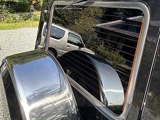 リアに備わるスペアタイヤカバーも輝きを放ち、全体の統一感を高めています。