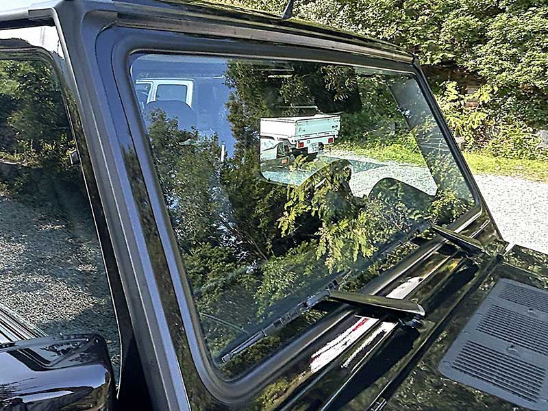 ボディパネルには目立つ傷や凹みは見られず、直線基調の無骨なシルエットが鮮明に際立ちます。