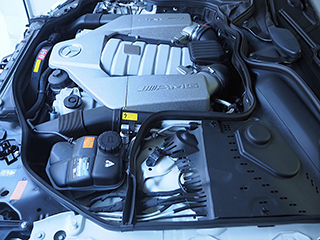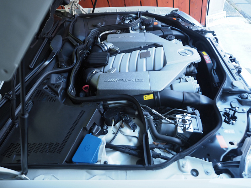 エンジンルーム、AMGロゴ入りカバーは結晶塗装様の表面処理になっています |