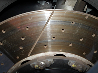 スリット入りドリルドのディスクローター、ブレーキパッドは社外品の高性能ノンダストパッドを使用しています |