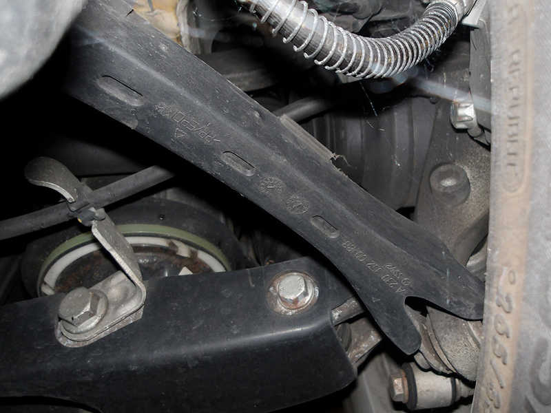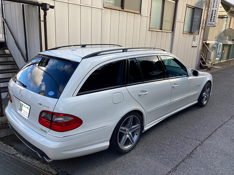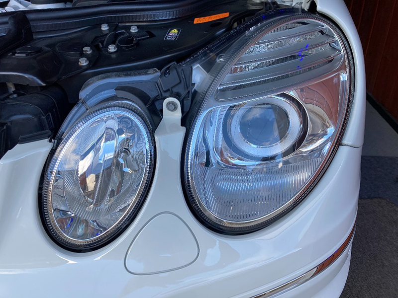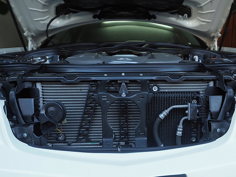 エンジンルーム、大排気量エンジン搭載のためさすがのEクラスエンジンルームも隙間があまりありません。ホース・チューブ類、ケーブル類は目視では劣化は見られませんでした |