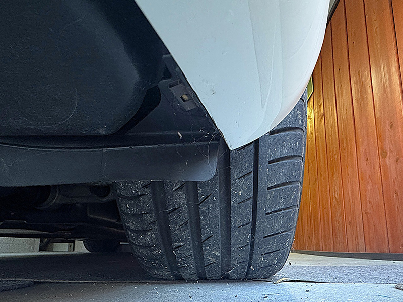 リアタイヤ、ContiSportContact3 265/35ZR18を履いています。サイドウォール部、ショルダー部ひび割れ見られません。フロントは異径の245/40ZR18になります |