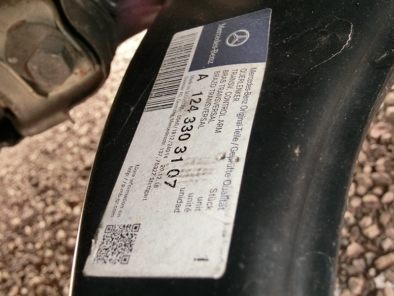 交換済のロアアームにはパーツステッカーが残っっている |