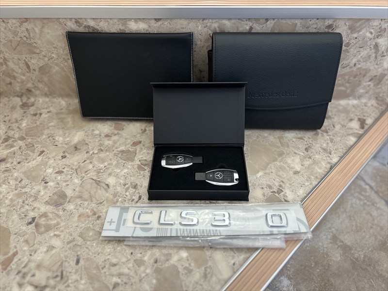 付属品として、取説、スペアキー、それらに付随するケース類、純正エンブレム(現オーナーさんによりエンブレムのみCLS55に変更)が御座います。
