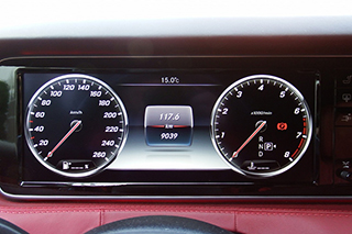 一般的に、クーペタイプの車のリアシートはオマケ的な位置付けにされがちですが、Sクラスだけあって、リアのヘッドクリアランスまでしっかり確保されており、身長183センチの筆者でもストレスを感じることなく収まりました。