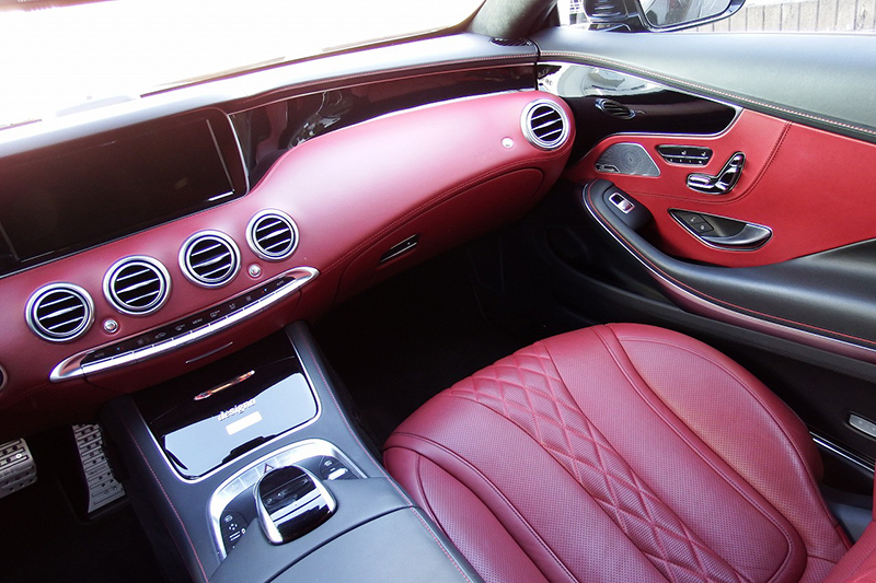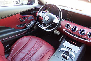とても上品なブラックとボルドーのツートンで、レザーの質感も素晴らしく、高級感漂う室内です。