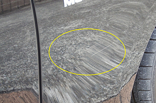 左後方(ナンバープレート右側)の塗装劣化箇所 |