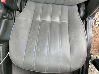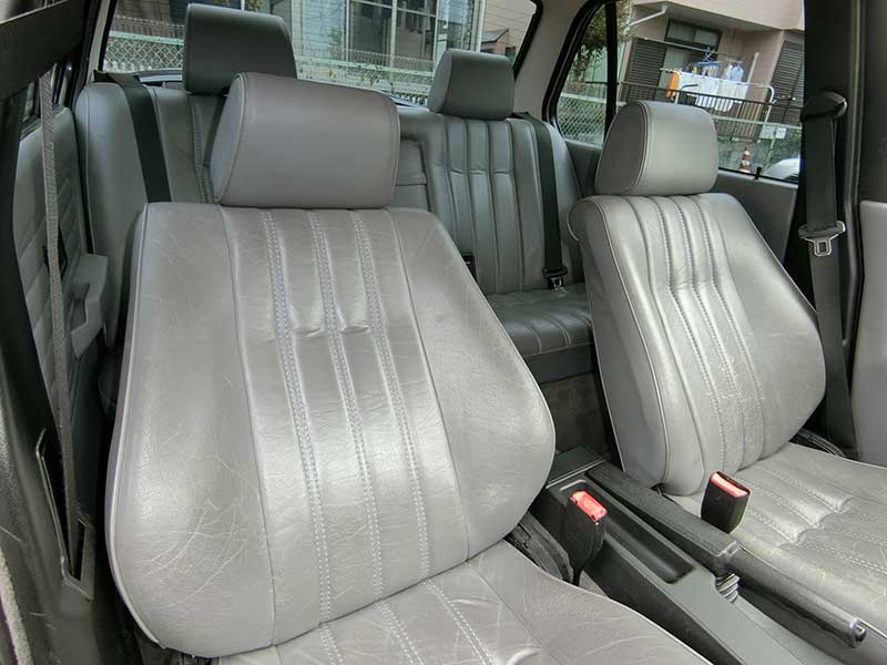 ・グレーの革シートはアニバーサリー専用で、運転席や助手席は皺や擦れが見られます。