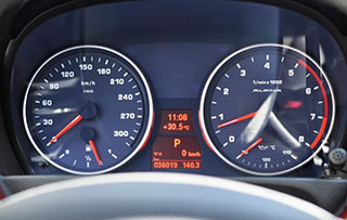 310km/hまで表示される速度計・・・7000rpmからがレッド・ゾーン・・・ |