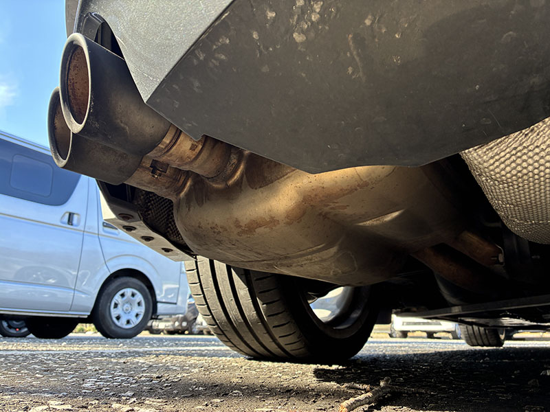 Mスポーツ専用のエアロがとてもスポーティーです。 また、購入時から付いていたので純正品か分かりませんが、カーボン調のリアスポイラーが装着されています。