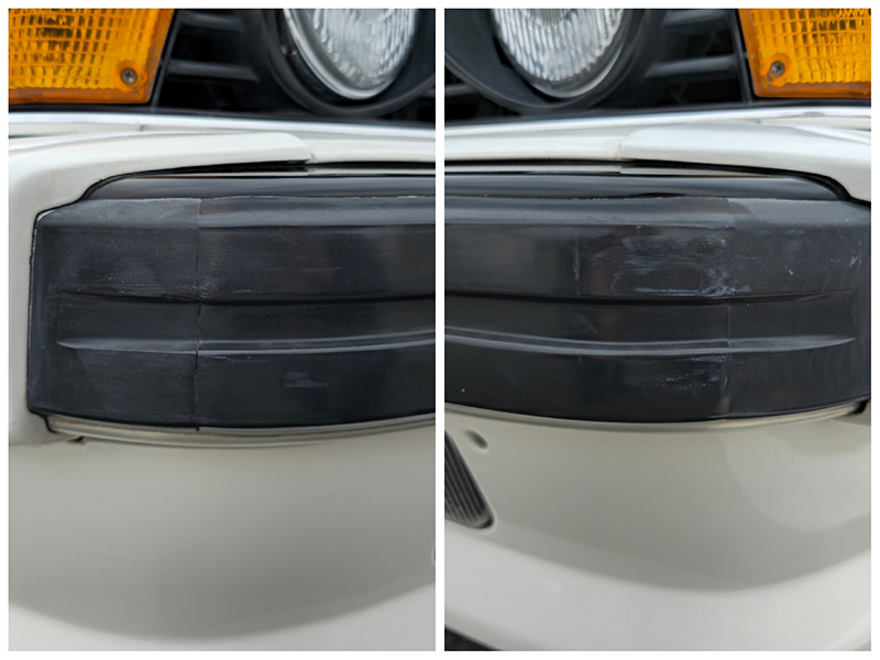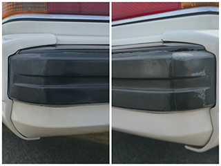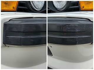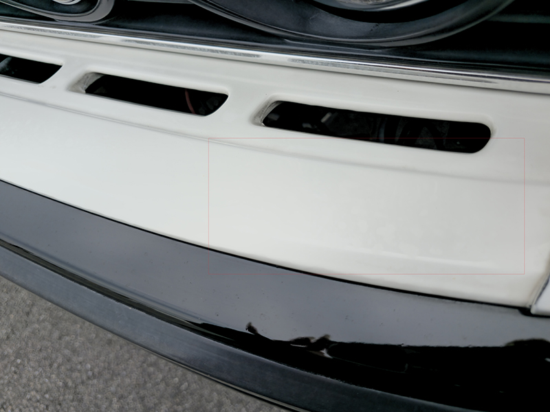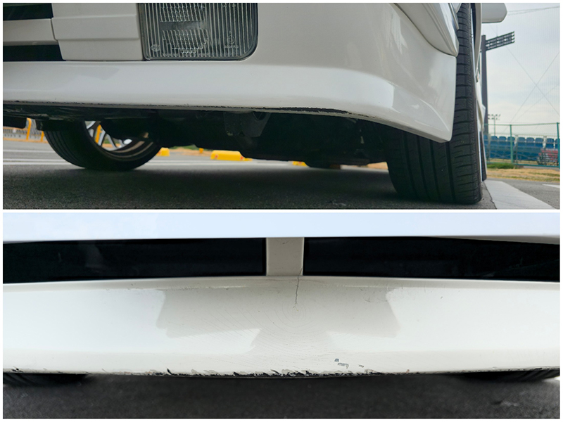 フロントスポイラー下部の擦り傷です。センターは一部ヒビが入っています。 |