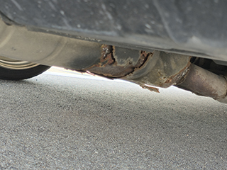 マフラー部分に腐食がみられました。(R4に排気漏れ修理済み) |