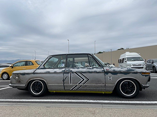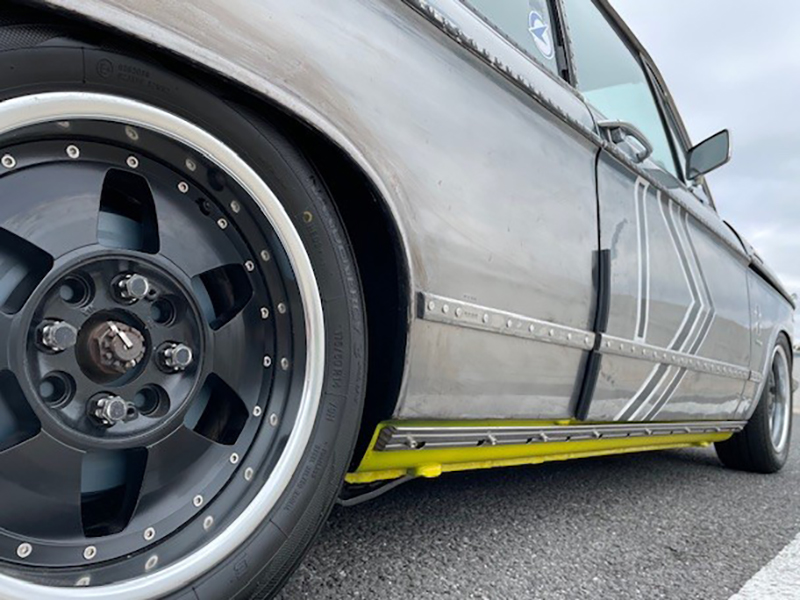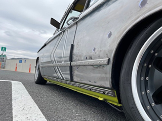 エアサス仕様、停車時の状態。もう少し車高は下がります。逆に通常走行時はもう少し上がります。 |