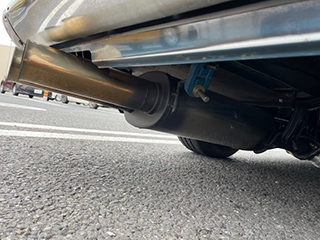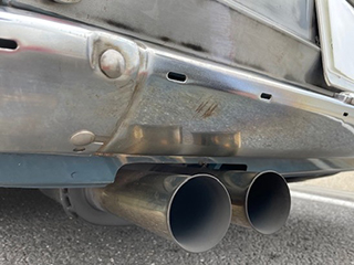 リアマフラーの出口は加工されている。ワンオフマフラーに合わせバンパー下ボデイーもマフラー出口に合わせ加工済み |