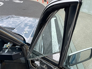 三角窓の開閉は、窓下に見られるアルミ削り出しの丸いノブを回して |