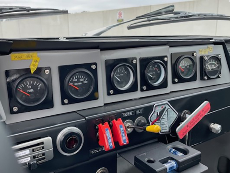 ダッシュボードは純正を取り払いオーナー様が1から製作。正に航空機の計器のよう |