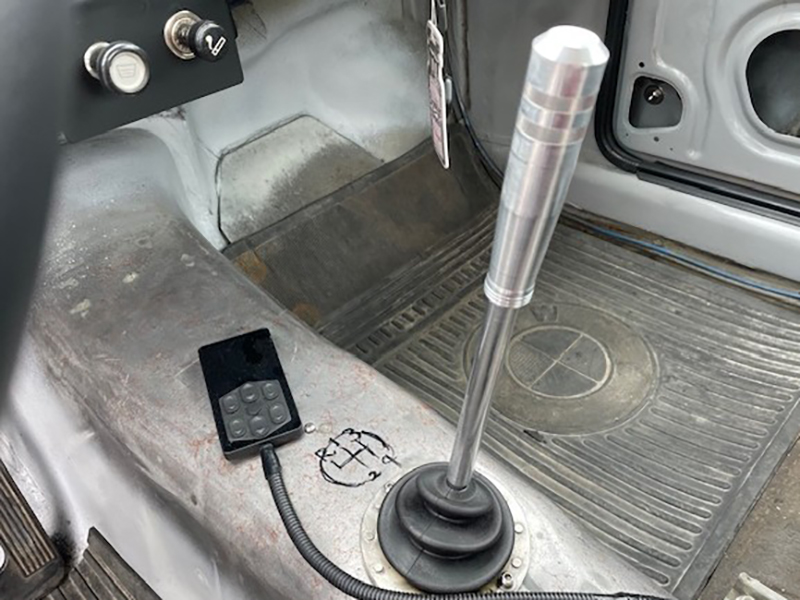 シフトノブは旋盤器具をお持ちのオーナー様の手作り。随所に見られるアルミ削り出しパーツは全てオーナー様のワンオフ品 |