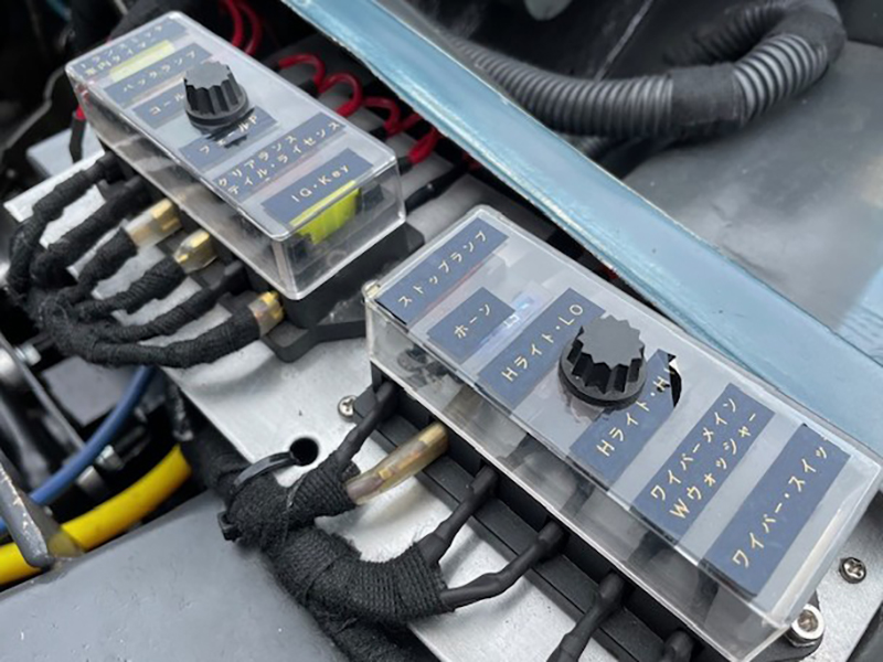 旧車に重要なヒューズ、リレーは増設、配線周りは抜かりが無い |