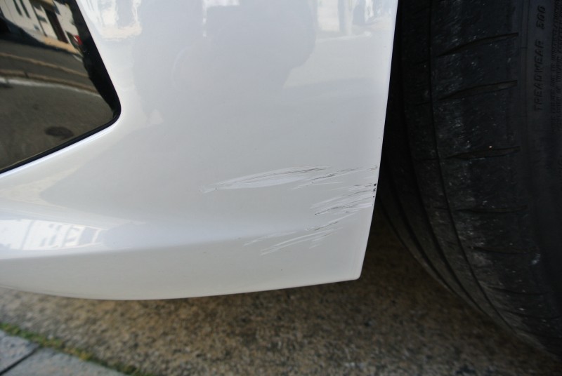 取材時、唯一、左前下部に、オーナーも気付かなかった浅い擦り傷を発見しましたので、(画像参照)