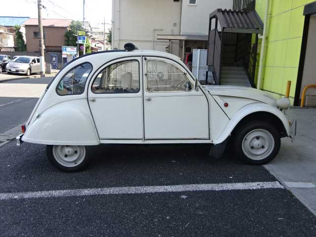 | 2CVがペリエとコラボした限定車、スペシャルPerrierです。 1988年に限定で製造されたペリエは、国内には正規では輸入されていません。 当時、愛知県の業者さんが何台か輸入したうちの一台だと思われます。国内登録が昭和63年(1988年)になっています。 オーナーさんは外車のメカニックをされており、現在は足として使用されているそうです。 ペリエの特徴として ・ボンネットにグリーンのデカール が付きます。 残念ながら、ボンネットのゴリラマスコットが欠品しています。 外装はオリジナルの塗装です。一部、再塗装されているようですが、ほぼ新車時の塗装だそうです。 キズやへこみはありますが、「足としてのフランス車」なので、オーナーさんは気にされずに乗っています。 フロアも錆は無く、ボディはしっかりしています。保管状況はずっと良かったのだと思われます。 ヘッドライトがイエローバルブになっています。 幌は巻き上げ式でオープンエアーを楽しめます。黒いテープで補修されているところは、切れています。 タイヤは交換したばかりで、その際にバランスも調整済み。 直近の整備として・・・ 2019年4月 ・バッテリー交換 触媒が付いてますので、このまま車検も通ります。 多少のスペアパーツもお付けします。 内装もオリジナルを保っています。 スピードメーター、スイッチ類もオリジナルで当時ものです。 また、足元にPerrier用のクーラーボックスが付きます。 ドアの内張に、Perrierとこん棒を持ったゴリラが交互にプリントされており、あそぼ心を感じます。 シートも色褪せていますが、大きなダメージは無く乗り心地はしっかりしています。オーナーさんが、シートの裏のゴムを増強したそうです。 オーディオが付きます。ETCは付いていません。 エンジンや機関は良好です。 |