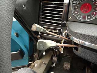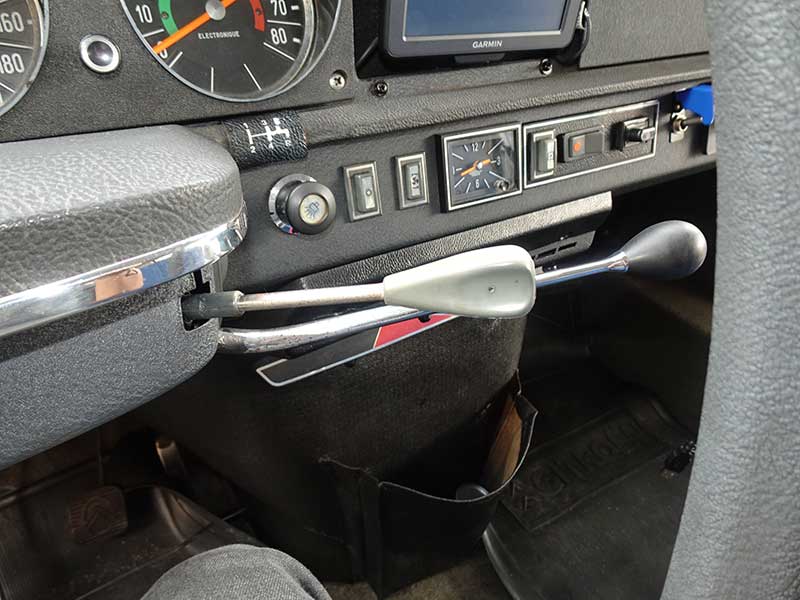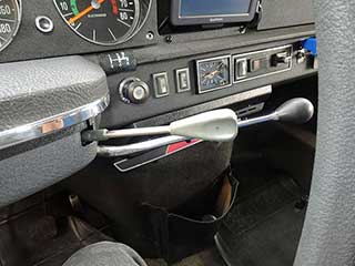 マニュアルトランスミッションのシフトレバーは右側、5速パターンプレートはインパネに貼り付けてありました。
