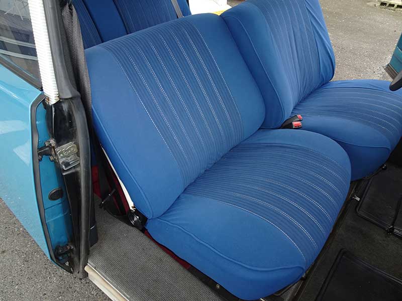 ボディカラーとは違い、濃いブルーのシートがモダンでお洒落です。