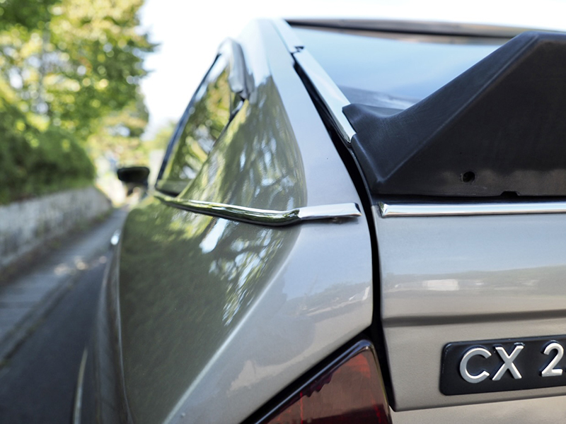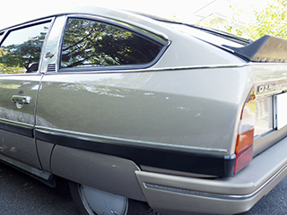 空気力学のシンボルである「CX」を冠したネーミングをするなど、シトロエンならではの空気抵抗を徹底的に追求したデザインは、スフィアに搭載した窒素ガスと油圧を機械式でコントロールするセルフ・レベリング・サスペンション・システムに始まり、特徴的なリアハッチの窪んだガラス面など、雨水を自然に集約でき、リアワイパー不要の観点から空気抵抗を減らすことを考えた、実に実利に適った素晴らしいデザイン集約です・・・。
