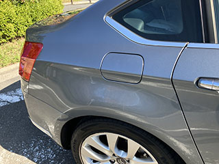 右フロントフェンダーアーチに擦り傷(磨けば落ちそう)、右リアドア・クォーターにエクボ、トランクフード・リアバンパーに小傷があります。