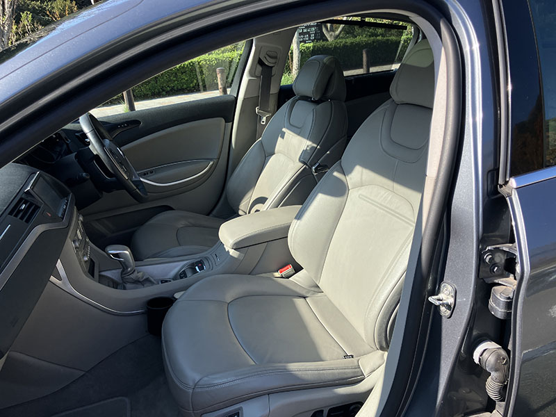 シートに多少のシワはあるものの清潔感があり、良い状態に保たれています。 天井の垂れもありません。 写真では、運転席背もたれにキズ痕が写っているように見えますが、これは光の反射です。