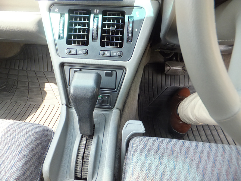シフトはAT、シフトレバー付根はブラシのような独特な形状 |