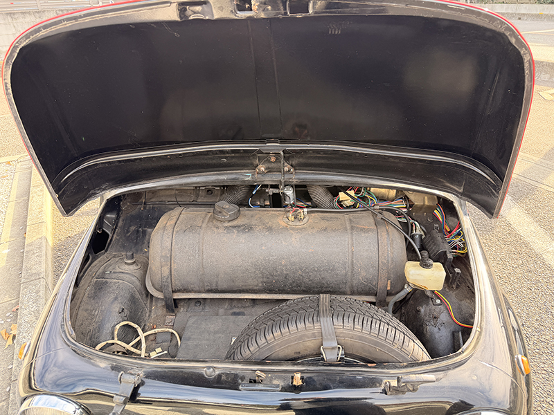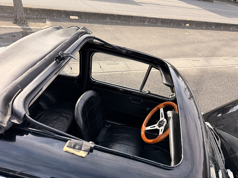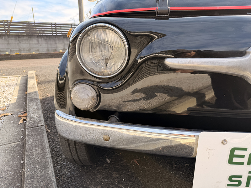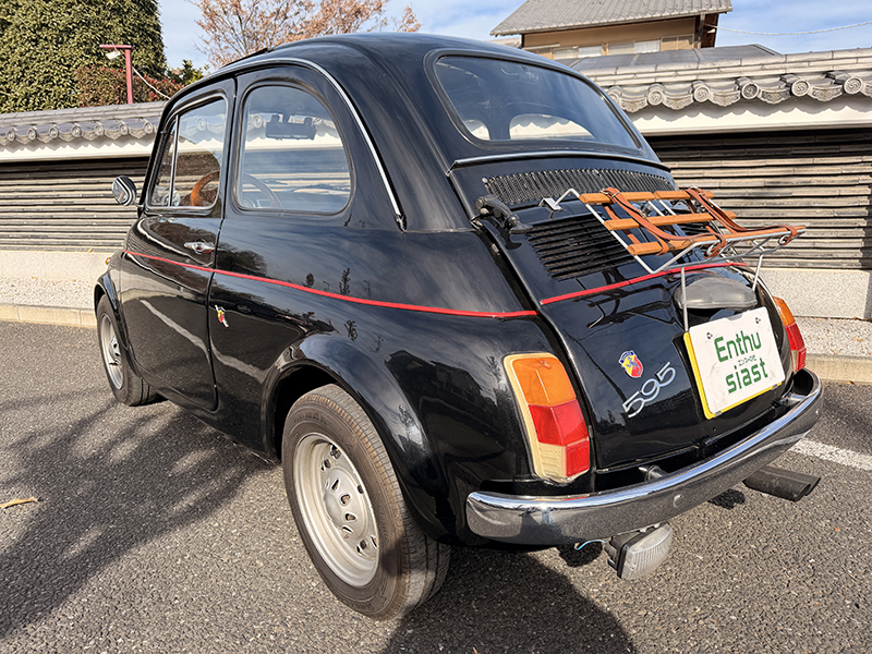 黒の500。元色は恐らく水色。専門店の情報によると当時の黒色には下地カラーとして水色が使用されていたとのこと。普段は半分屋根の下にボディカバーを使用されて保管。 普段使いされておりますので使用感があります。