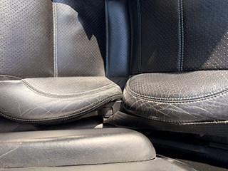 シートは一脚のみ一度同車種のものから交換されたそうです。よく見ると年式の違いかステッチの色が違います。