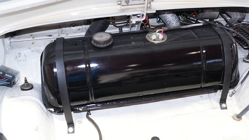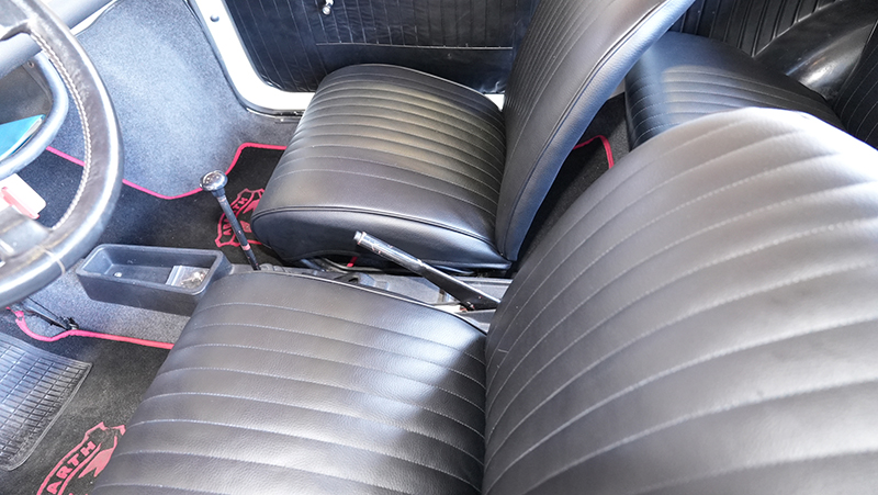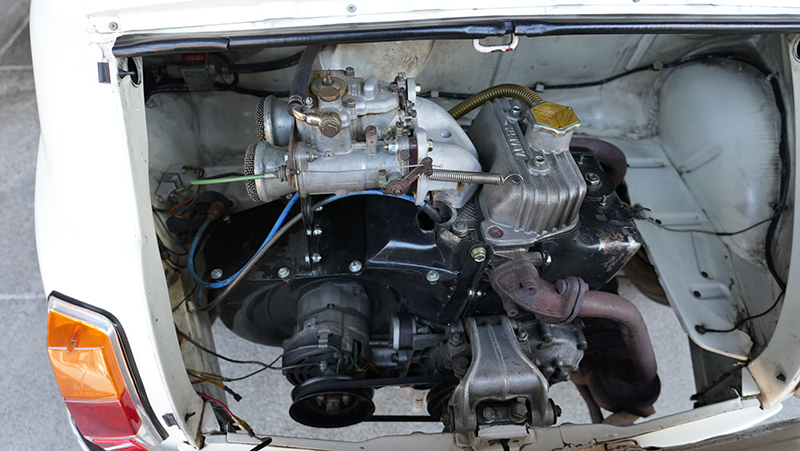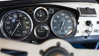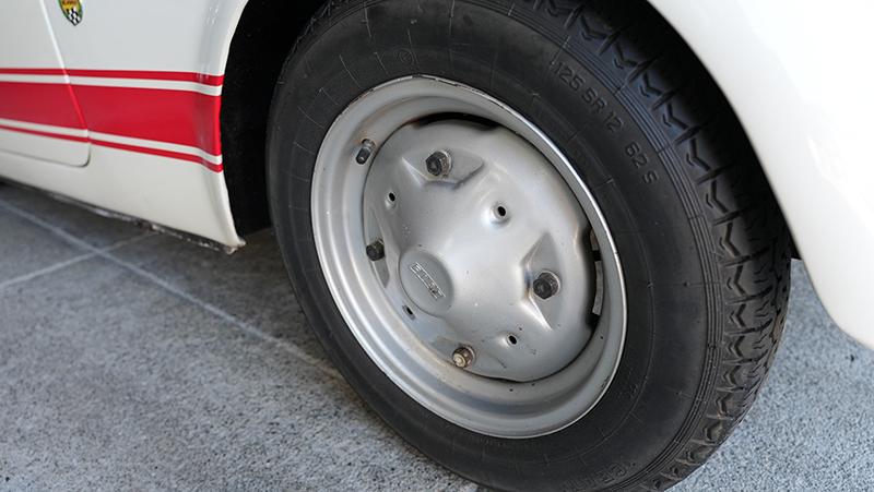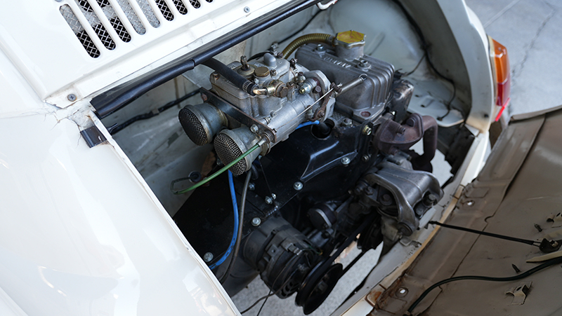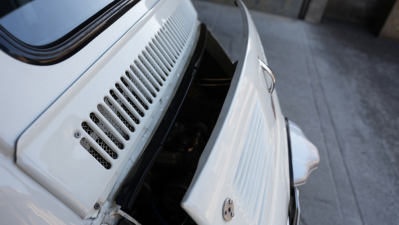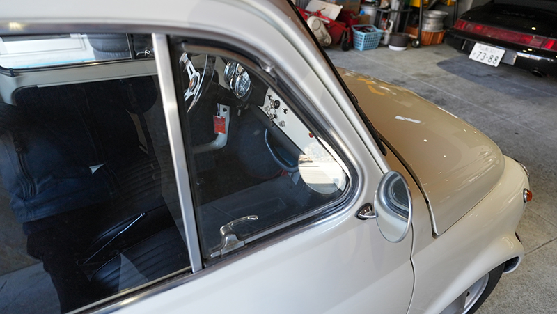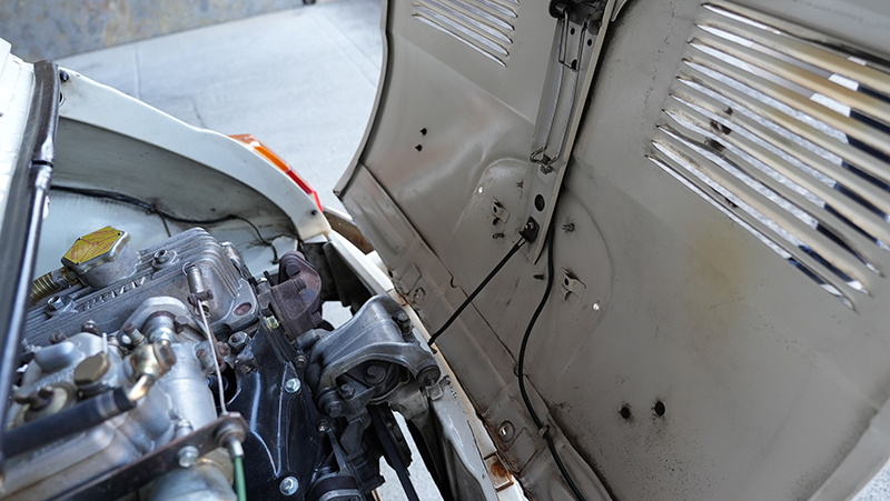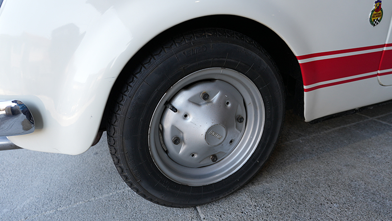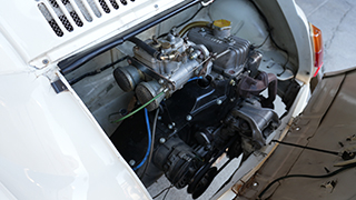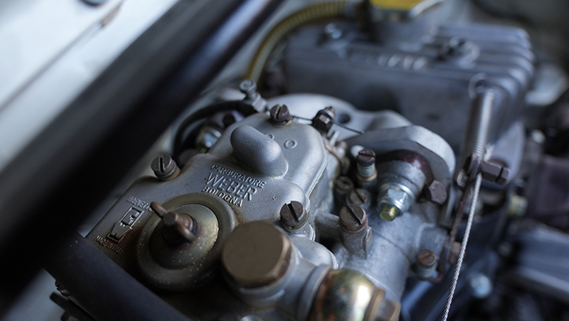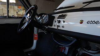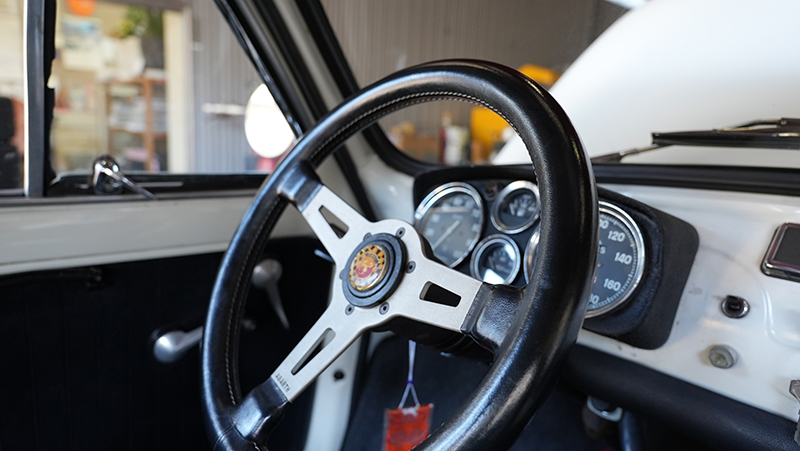 計器類はイエガー、タコ、スピードメーター、べリアのオイルと燃料計、エンブレム、エンジンボアアップ595CC、エンジンヘッド、ウエーバーキャブ、オイルパン、ステアリングなど、エンジンリッドは開閉固定ができる事により冷却効果が図れる。