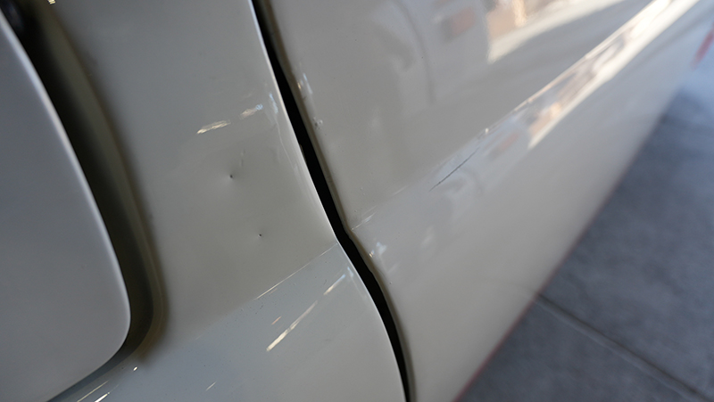 艶はあり綺麗にですが、全体的に経年変化が進んでおり、コンデションは画像でわかる通り、デントやラスト、クラック、シル下部やドアヒンジ付近に剥がれ錆が見受けられます。