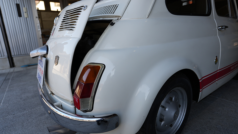 上記記載した、この個体はアバルトパーツ純正品を組み込んだFIAT 500 ABARTH仕様である。