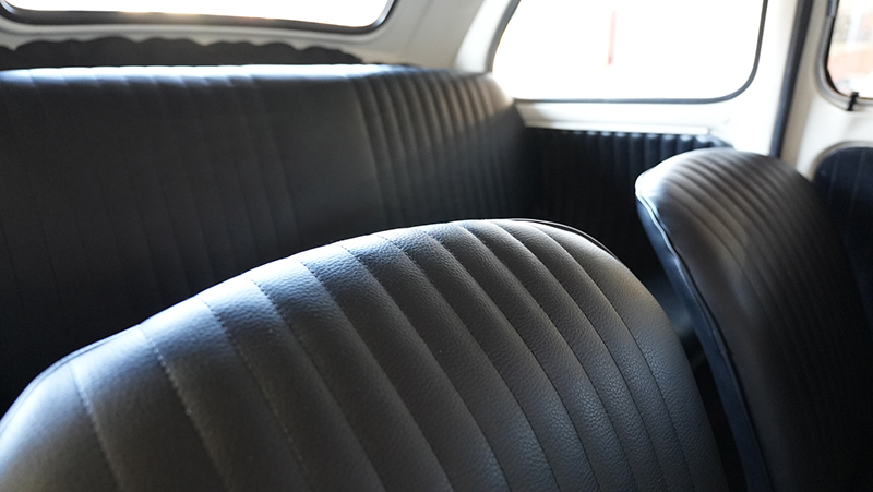 本革黒でドライバー、パッセンジャー、リアシートを現オーナーがすべて張替済みです。