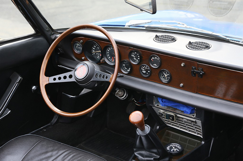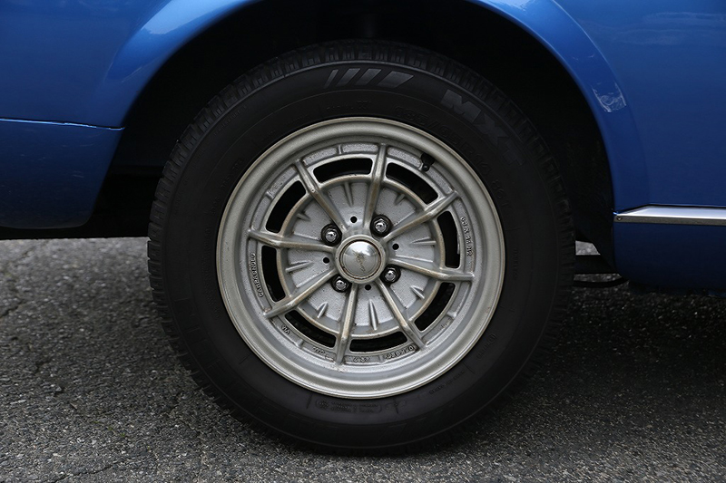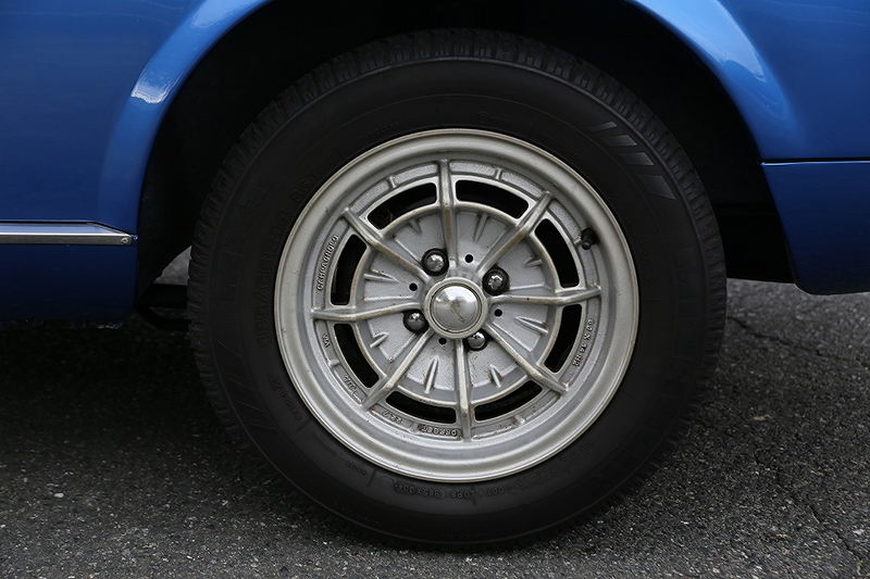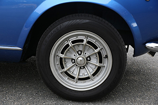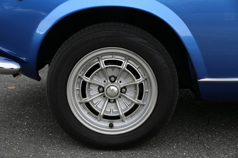 ホイールは貴重な当時物のカンパニョーロ製マグネシウムホイール。クラシックイタリア車らしい雰囲気を一層高めています。