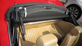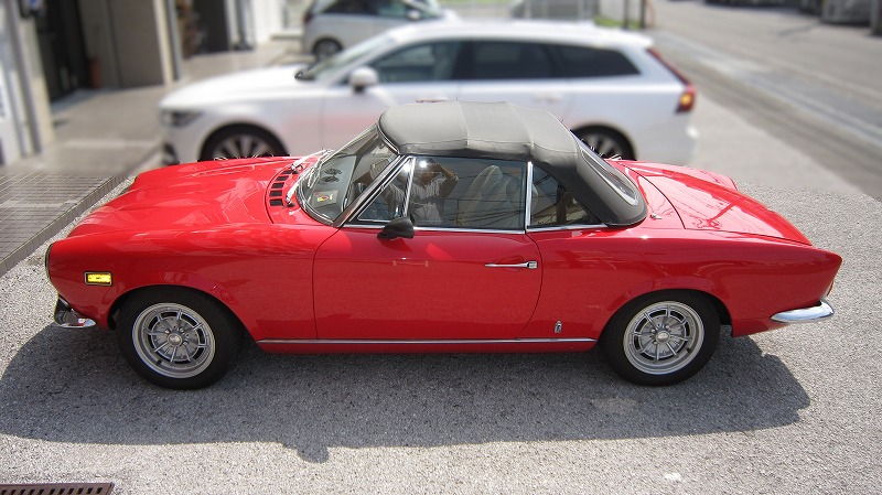 幌の操作性: 124スパイダーのソフトトップは、座ったまま片手で開閉できるほど操作性に優れており、当時のオープンカーとしては画期的な完成度でした。