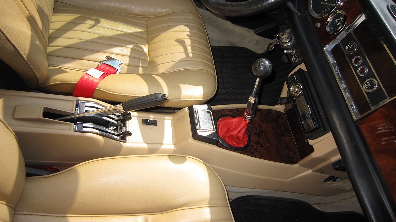 運転席、助手席ともドアライニング下端の取り付けに浮きが見受けられる程度で、ウッドの状態もまずまずで、レザーシート、シート同色の内張等内装も綺麗です。